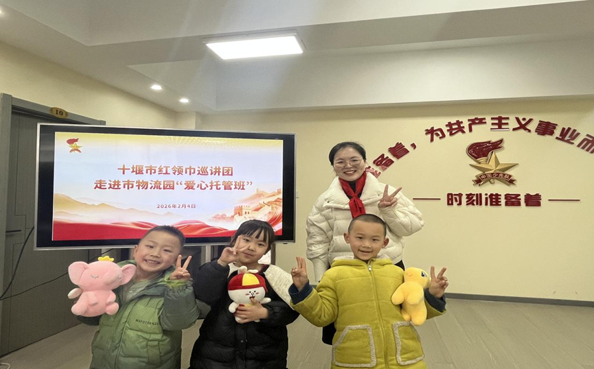 在十堰市快递物流园点位,东风七中中队辅导员胡景怡老师为孩子们带来卡通布娃娃礼物,开展情感陪护和互动交流,让温暖的陪伴驱散了车城冬日的寒意。