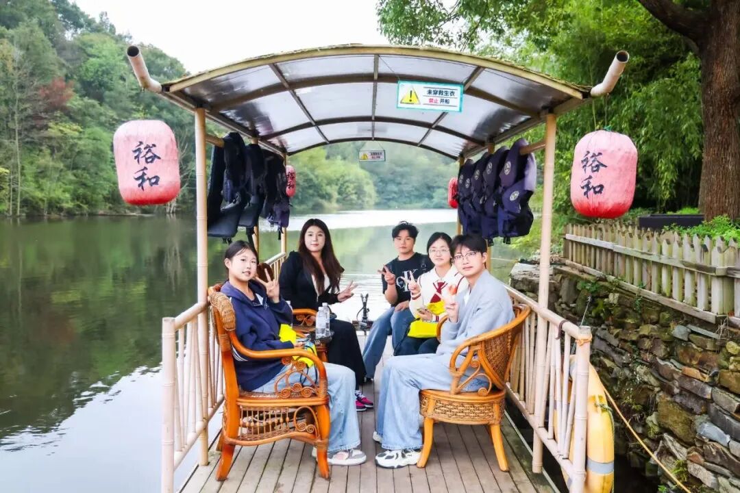 在锦鲤土司城,师生们漫步于古朴的土家吊脚楼之间,体验独特风情文化;穿行在花溪水阶之上,感受潺潺流水的山间天籁;驻足于花海瀑布之下,欣赏花瀑相融的梦幻奇景……尽情享受“向往的生活”。